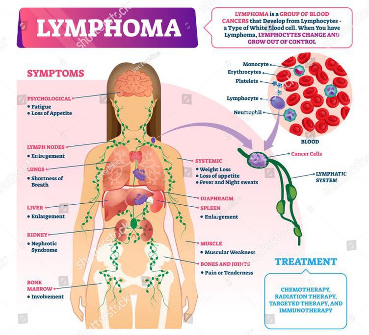 Hodgkin's lymphoma — formerly known as Hodgkin's disease — is a cancer of the lymphatic system, which is part of your immune system. It may affect people of any age, but is most common in people between 20 and 40 years old and those over 55.In Hodgkin's lymphoma, cells in the lymphatic system grow abnormally and may spread beyond it. Hodgkin's lymphoma is one of two common types of cancers of the lymphatic system. The other type, non-Hodgkin's lymphoma, is far more common.There are four types of lymphoma: Chronic lymphocytic leukemia Cutaneous B-cell lymphoma Cutaneous T-cell lymphoma Lymphoma. Signs and symptoms of Hodgkin's lymphoma may include: Painless swelling of lymph nodes in your neck, armpits or groin Persistent fatigue Fever Night sweats Unexplained weight loss. Severe itching Increased sensitivity to the effects of alcohol or pain in your lymph nodes after drinking alcohol. Make an appointment with your doctor if you have any persistent signs or symptoms that worry you. The mutation tells the cell to multiply rapidly, causing many diseased cells that continue multiplying. The mutation causes a large number of oversized, abnormal lymphocytes to accumulate in the lymphatic system, where they crowd out healthy cells and cause the signs and symptoms of Hodgkin's lymphoma.Various types of Hodgkin's lymphoma exist. Your diagnosis is based on the types of cells involved in your disease and their behavior. The type of lymphoma you are diagnosed with determines your treatment options. Factors that can increase the risk of Hodgkin's lymphoma include: Your age. Hodgkin's lymphoma is most often diagnosed in people between 15 and 30 years old and those over 55. A family history of lymphoma. Having a blood relative with Hodgkin's lymphoma or non-Hodgkin's lymphoma increases your risk of developing Hodgkin's lymphoma. Being male. Males are slightly more likely to develop Hodgkin's lymphoma than are females. Past Epstein-Barr infection. People who have had illnesses caused by the Epstein-Barr virus, such as infectious mononucleosis, are more likely to develop Hodgkin's lymphoma than are people who haven't had Epstein-Barr infections.