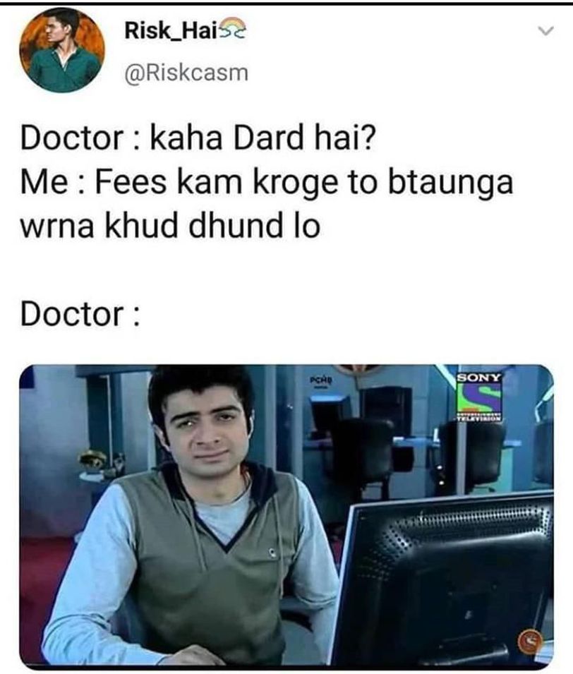 Doctor : where is the pain Patient : If u gave discount on fees then I will tell you otherwise ......ππ