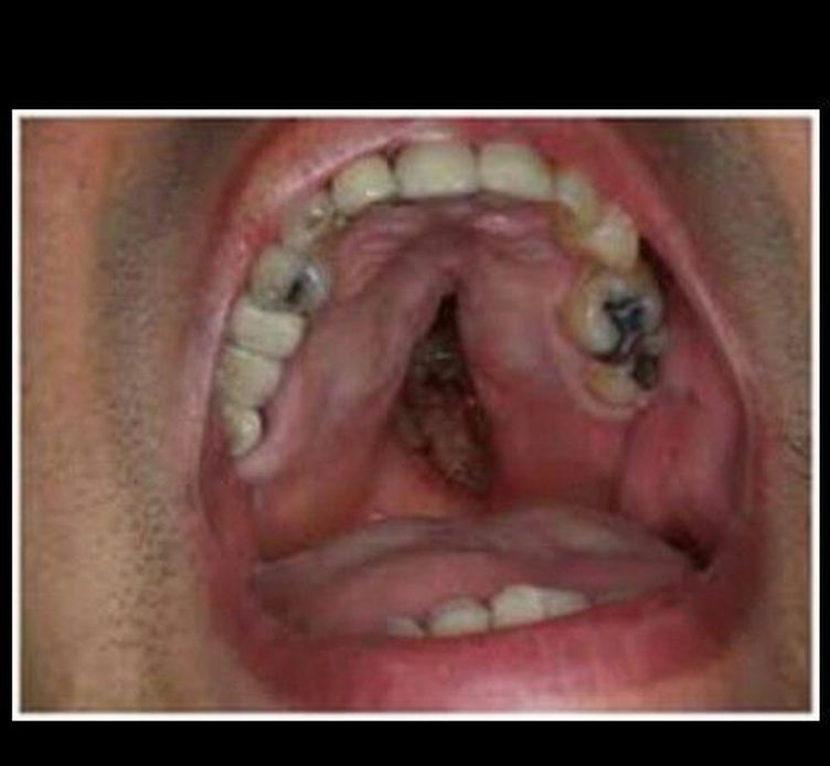 Cocaine induces vasoconstriction and might cause necrosis in the mucosae and surrounding tissues (cartilaginous and osseous). Frequent contact due to intranasal use induces nasal septal destruction, choanae, paranasal sinus walls and palatine.
