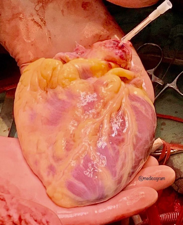 Human heart ready to be transplanted!•A healthy Heart plays a key role in maintaining one's life and is thus responsible for pumping and controlling the flow of oxygen and other necessary nutrients throughout the body via blood 🩸. The rate of contractions is controlled by electrical impulses from the Sino-Atrial Node. •The right side of the heart collects deoxygenated blood from two large veins, the superior and inferior vena cavae. The left side of the heart receives oxygenated blood from the pulmonary veins. It is then pumped into the left ventricle through the mitral valve and into the aorta through the aortic valve for the systemic circulation. 📷•Medicogram• #letslearn #heart #cardiology #medical #doctor #surgery #love #healthcare #hearttransplant #positivethinking #medicogram
