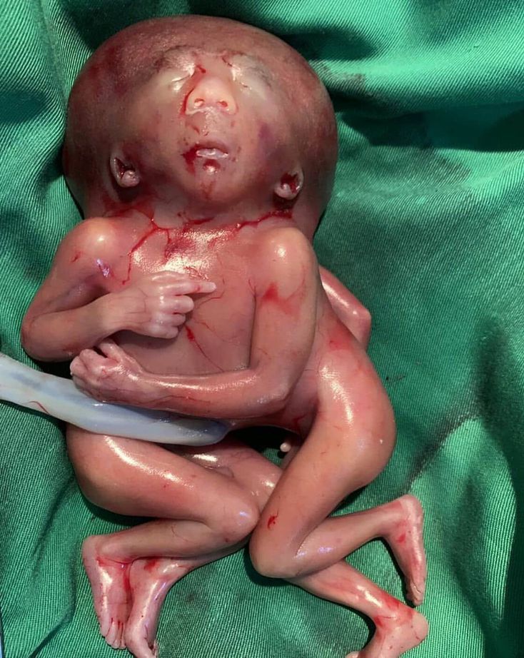 This is a case of conjoined twins with 4 lower and upper limbs, and one head! Cephalothoracopagus is a rare type of conjoined twins seen in 1 in 3 million births. It is a rare monozygotic twinning resulting in imperfect fusion of the head, chest and upper abdomen. They are fused from the vertex to the umbilicus. They share a common cranium with either one composite face or two faces on opposite sides of the conjoined and enlarged head or skull. These twins have separated limbs and pelvis. The thoraces are fused with fusion of liver, heart and the upper gastrointestinal system upto the division at the Meckel diverticulum. There are usually four arms and legs, and on the face there were two eyes, one nose and two ears. The precise etiology of conjoined twinning is unknown. The most common explanation is fission of single zygot, or alternatively fusion of two dizygotic or monozygotic embryos in their very early embryonic development between 13 and 15 days after conception. These twins tend to be non viable. Credit: @niro_nirosha