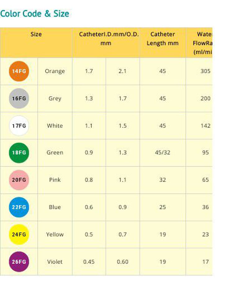 Needles size according to colour