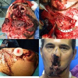 ⚠️A Viewers discretion is advised ⚠️A This is a case of a 45-year-old male patient who suffered a gunshot wound to the face. He was immediately transferred to the operating room where an emergency tracheotomy was performed to ensure the airway. Once the airway was under control, a team of maxillofacial surgeons, led by Dr. Omaira Cohen Rios started with the reconstruction. Thorough exploration of the affected area was performed to assess the damage after which they started the reconstruction. The jaw was reinforced with titanium plates and screws, after that the reconstruction of the palate, tongue and nasal pyramid were performed and everything was cosed in layers. Currently the patient is in stable condition and reconstructive interventions to restore the facial anatomy are planned.