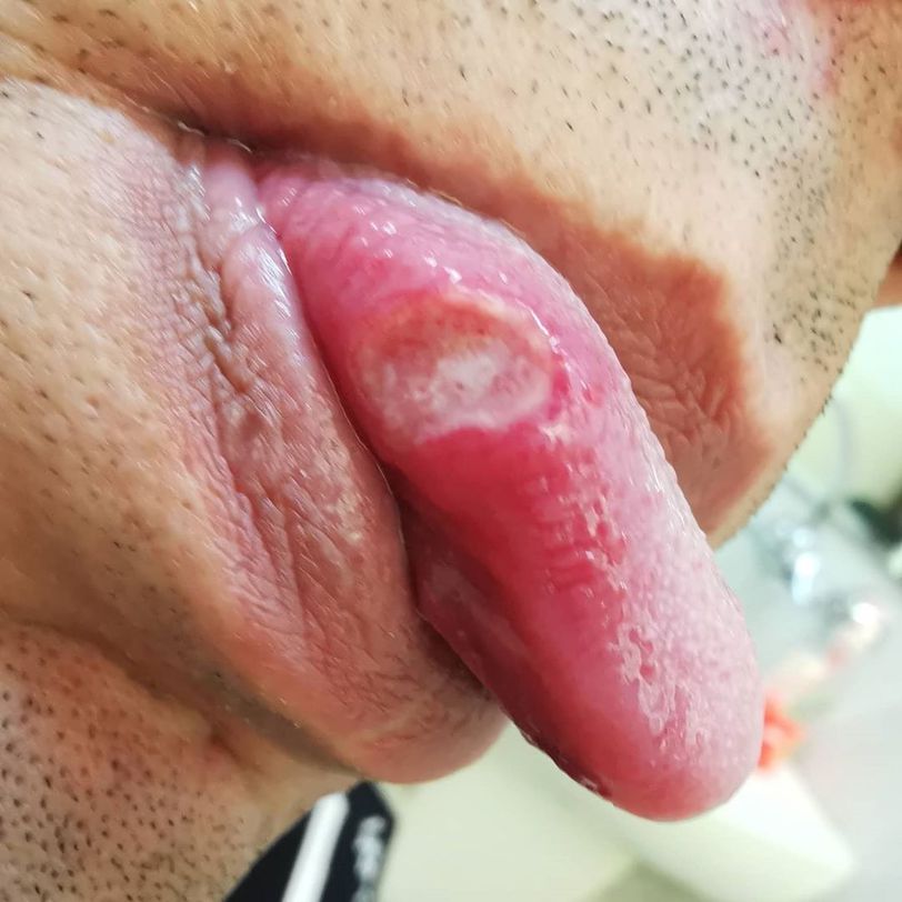 30 years old male, with no previous medical history, complains of this painful ulcer on his tongue, what's your DDX?