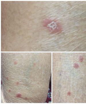 Pt 56y DM HTN has this scar in leg and hand no itching or pain