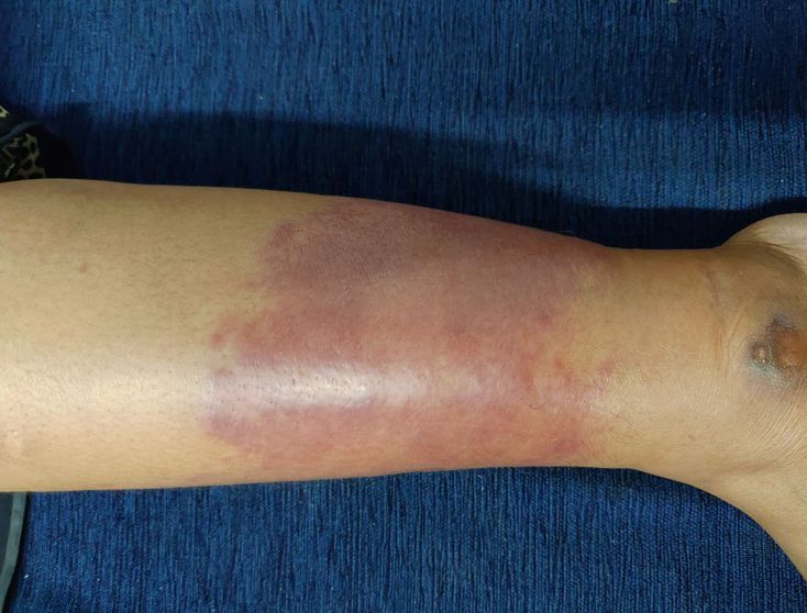 The patient may have deep vein thrombosis because there's ulcer on the leg which resulted from venuos insufficiency