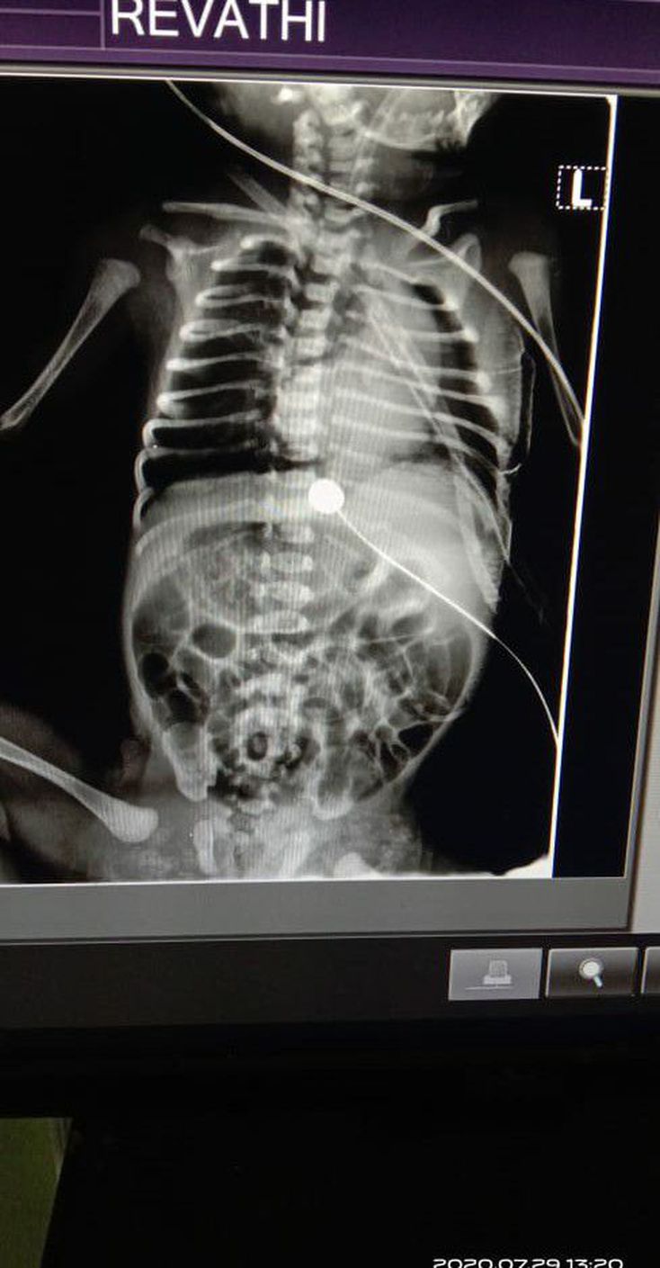 This body was born with oesophagus and traches combined....later doctor did surgery...this X ray was taken after surgery....interpretation pls?