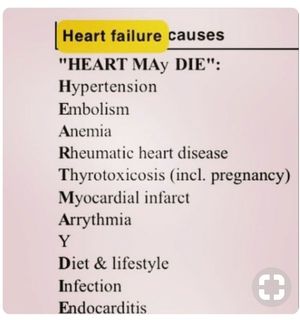 hypertension causes less blood supply to left ventricle through coronary arteries.embolism block coronary arteries as well as other arteries causing increased work load on heart.in anemia as there is less hb so heart has to work more so that tissue is supplied with more blood.thyrotoxicosis causes increase in systolic and decrease in diastolic pressure.mycardial infarct os the most common cause of heart failure.arrythmia may lead to damage of heart.diet with saturated fatty acid causes coronary artery disease.sedentary life sttle causes CAD . endocarditis causes damage to heart leasing to heart failure.