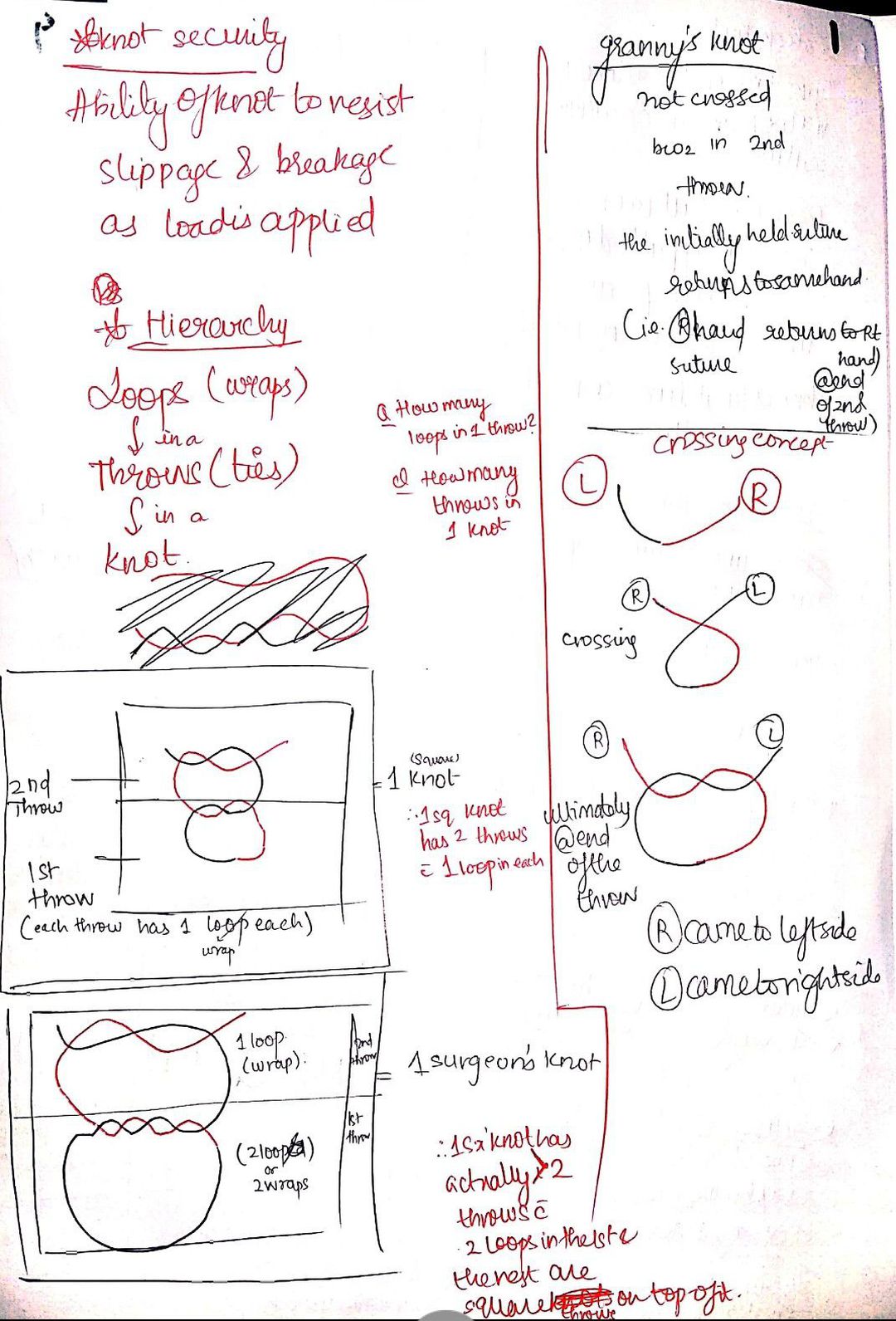 Sutures throws knots loops wraps