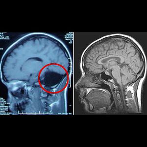 Complete cerebellar agenesis!! No brainer - notice a hole at the back where the cerebellum should be, compared to a normal brain! This woman has reached the age of 24 without anyone realising she was missing a large part of her brain. She is one of 9 people who are known to have lived without their entire cerebellum! The discovery was made when the woman was admitted to hospital complaining of dizziness and nausea. She told doctors she’d had problems walking steadily for most of her life, and her mother reported that she hadn’t walked until she was 7 and that her speech only became intelligible at the age of 6. Doctors did a CAT and MRI scans and immediately identified the source of the problem – her entire cerebellum was missing (see above). The space where it should be was empty of tissue. Instead it was filled with cerebrospinal fluid, which cushions the brain and provides defence against disease. The cerebellum, known as the “little brain”, is located underneath the two hemispheres. It looks different from the rest of the brain because it consists of much smaller and more compact folds of tissue, representing 10% of the brain’s total volume but contains 50% of its neurons. The cerebellum’s main job is to control voluntary movements and balance, and it is also thought to be involved in our ability to learn specific motor actions and speak. Problems in the cerebellum can lead to severe mental impairment, movement disorders, epilepsy or a potentially fatal build-up of fluid in the brain. However, in this woman, the missing cerebellum resulted in only mild to moderate motor deficiency, and mild speech problems such as slightly slurred pronunciation. Source - New Scientist Journal.