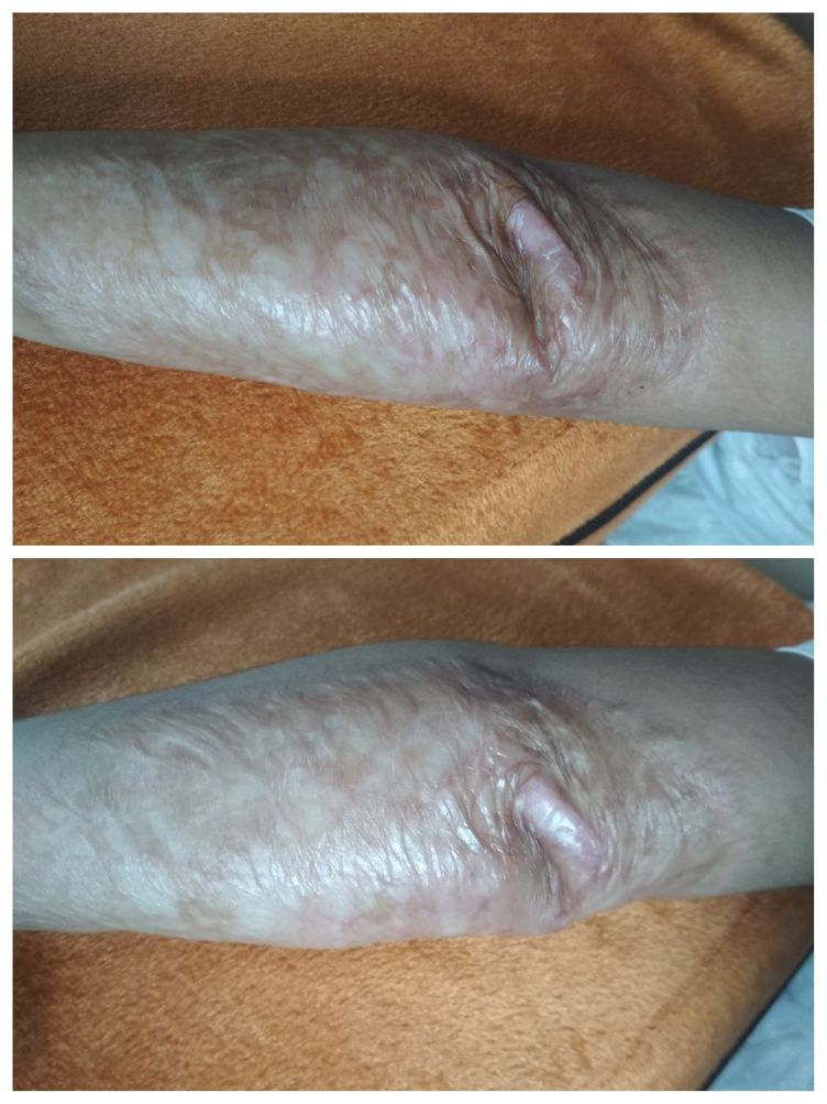 A baby girl of 3 months old accidentally got this burn on her forearm due to boiling water ..Now she is 3 years old but this burn mark has not gone yet ...What is the effective way to terminate this burn mark completely?