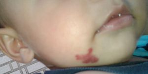 It looks like a strawberry mark and can either disappear by about 5 years or it could grow so I would say to get the baby checked