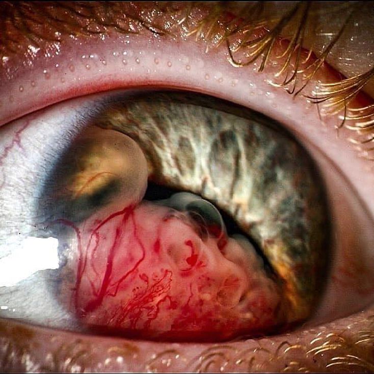 Medulloepithelioma of the eye is a very rare embryonal tumor that generally arising from the ciliary body, a circular structure just behind the iris that is composed of the ciliary muscle and ciliary processes which attach to the lens. This most commonly occurs in children and can present with secondary glaucoma, uveitis, and cataract. This 10-year-old boy with a chronic red eye presented with a cystic, vascular, nonpigmented ciliary body mass extending into the anterior chamber. When a ciliary bush mass is found, diagnosis is generally made based on histological findings, which reveals a locally invasive anterior ciliary body tumor comprising of undifferentiated highly mitotic cells. As these tumors are locally invasive, complete excision is curative and the survival prognosis is excellent.