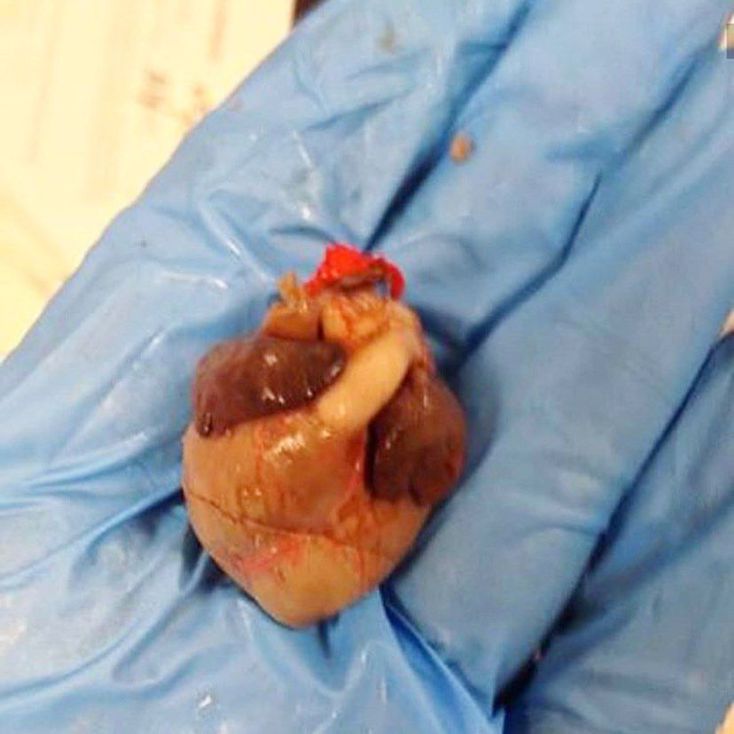 A tiny, delicate fetal heart. How can such a small heart pump enough blood to support life? Interestingly enough, the fetal heart does not have to pump blood to the lungs to pick up oxygen. It does not need a separate pulmonary artery and aorta. In the fetal heart, these two blood vessels are connected by a blood vessel called the ductus #arteriosus. After birth, the ductus closes and a separate left pulmonary artery and aorta form. The fetal heart also has an opening between the upper chambers (the right and left atria) called the foramen ovale. It lets blood flow directly from the right #atrium to the left atrium during fetal development, but closes after birth. - Mention your friends to see this shot Follow us @medshots to explore more! - Credits: unknown