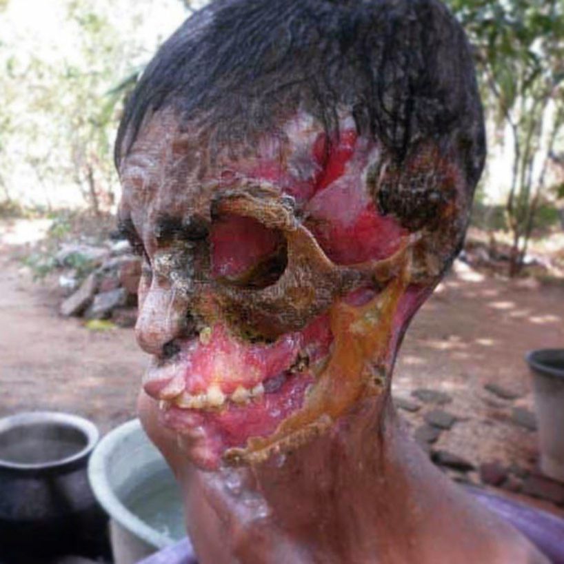 Can a simple bacteria that causes sore throat lead to this picture we observe here? The answer is Yes! - Flesh eating bacteria (necrotizing fasciitis) is a rare infection of the skin and tissues below it. It is caused by group A streptococcus (GAS) bacteria. That's the same type of bacteria that causes strep throat. Several types of other bacteria, such as staphylococcus have also been linked to the disease.