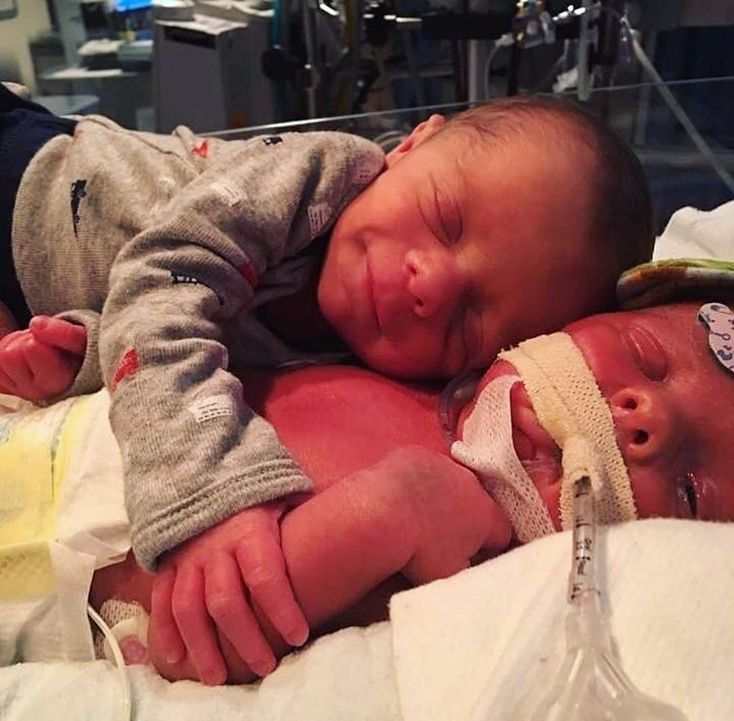 Twins are always together! 😍 Such an emotional shot of a baby embracing his twin brother in the pediatric ICU. #twins #babies #icu #medicogram