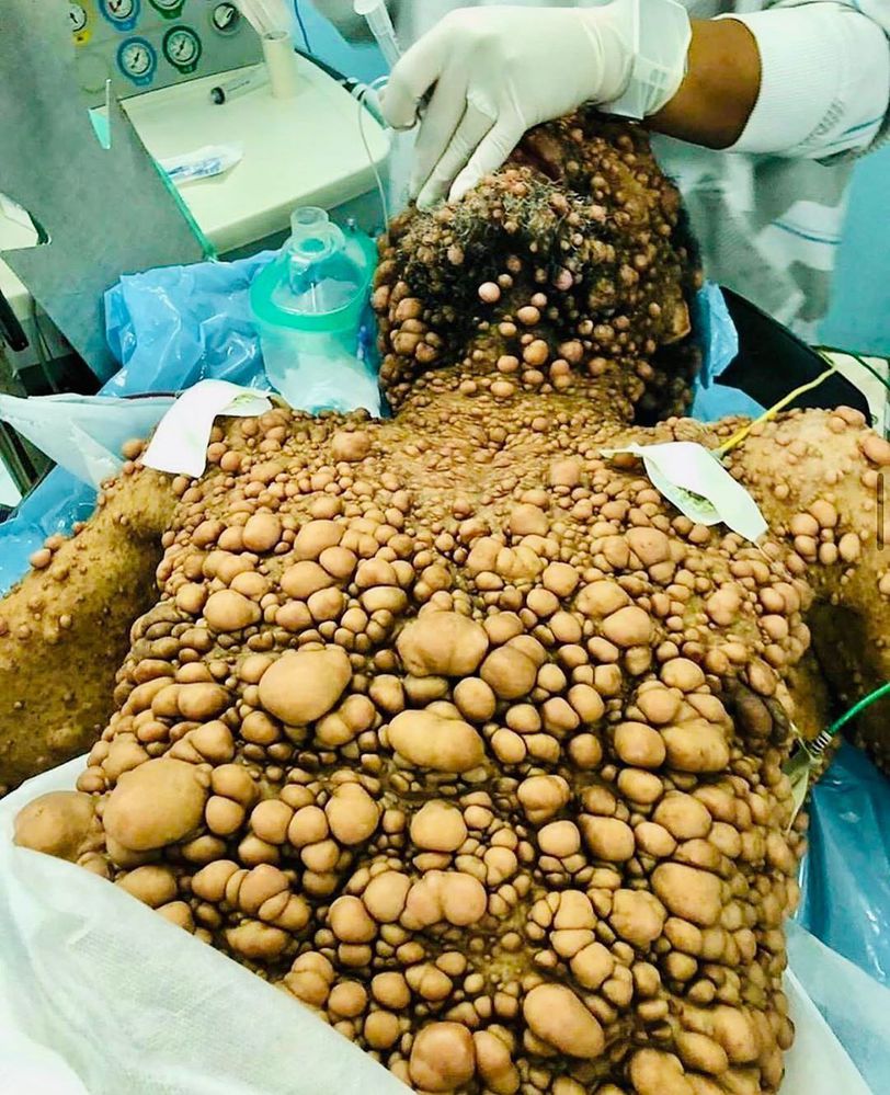 NEUROFIBROMATOSIS: Neurofibromatosis (NF) is a genetic 🧬 abnormality that affects the cell growth of neural tissue, leading to tumor growths over the entire nerve fibers of the body that impact the skin, nervous system, eyes and other organs. 🔹TYPES OF NF: NF is divided into two primary groups: neurofibromatosis type 1 (NF1), also known as von Recklinghausen or peripheral neurofibromatosis; and neurofibromatosis type 2 (NF2), also known as bilateral acoustic neurofibromatosis and central neurofibromatosis. ↪️ This very specific clinical finding is associated with neurofibromatosis type 1 (NF1), also called von Recklinghausen's disease, a rare genetic disorder characterized by the development of multiple noncancerous (benign) tumors of nerves and skin (neurofibromas) and areas of abnormally decreased or increased coloration (hypo- or hyperpigmentation) of the skin. It is one of the most common genetic disorders and affects 1 in 3,500. Adults develop neurofibromas, which are noncancerous (benign) peripheral nerve sheath tumors that are usually located on or just under the skin. Many have also multiple café-au-lait spots, which are flat patches on the skin that are darker than the surrounding area. 🔹CAUSE / GENETICS 🧬 OF NF: NF-1 is caused by a mutation of a gene on the long arm of chromosome 17 which encodes a protein known as neurofibromin, which is a negative regulator of the RAS oncogene signal transduction pathway. When RAS isn’t regulated, it is overexpressed. These are a family of proteins that are involved in cellular signal transduction. A cascade effect occurs when RAS is “switched on” by incoming signals, leading to activation of other proteins, which in turn, activate genes responsible for cell growth and differentiation, hence leading to neurofibromas. Due to their benign nature, neurofibromas should be surgically excised only when symptomatic. 📷: @medicogram #neurofibromatosis #cancer #benigntumor #oncology #medicine #health #surgery #clinical #hospital #medicogram