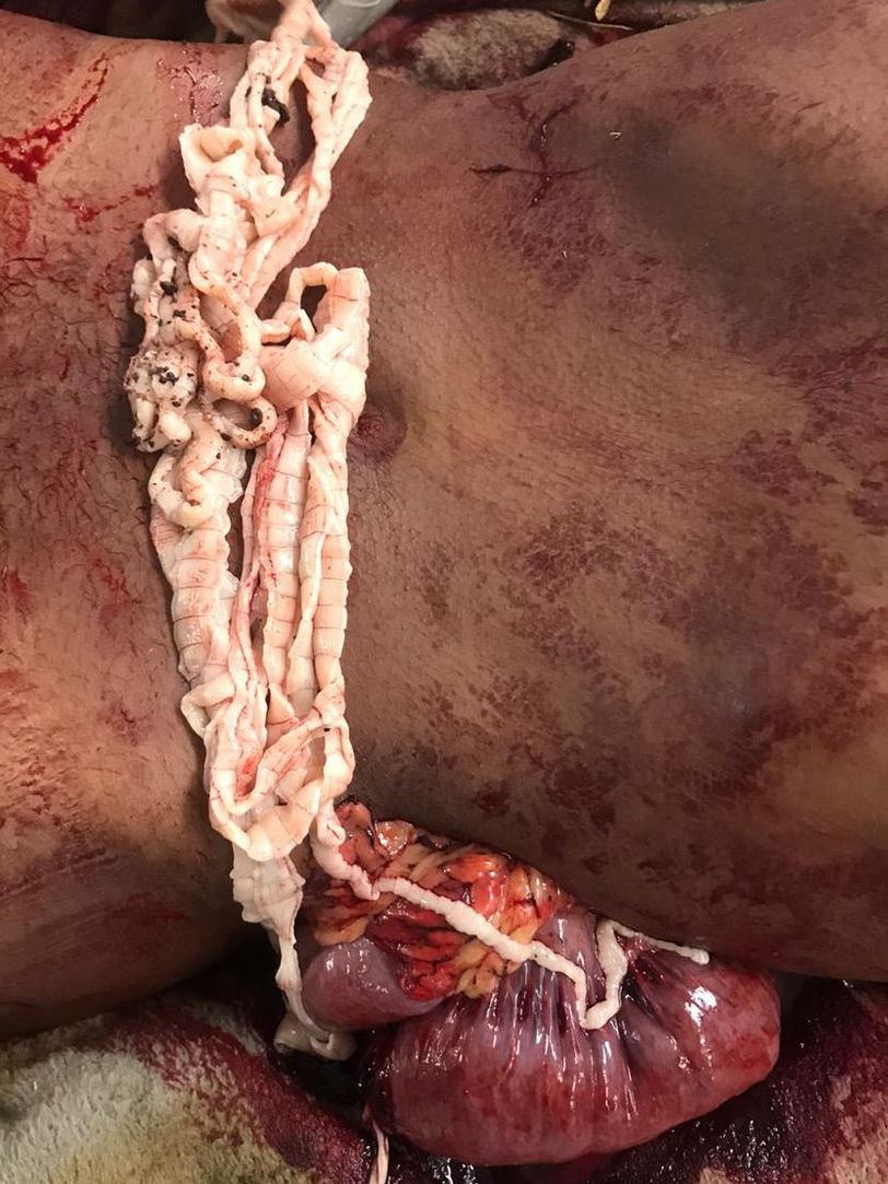 27 year old young male was rushed into the trauma pit one night by his hysterical friends from an illegal lockdown party after being stabbed with a knife by another male during a brawl. He had sustained a single deep stab to his left flank. Upon presentation, he appeared to be clinically stable, however heavily intoxicated not requiring much of analgesics. There was obvious evisceration of small bowel segments with significant injury requiring immediate exploratory laparotomy; as well as this entire blob of squirming strange noodles. TAPEWORMS!!! A.k.a “Cestodes”!!! Not sure if this perpetrator did him a favour or not...