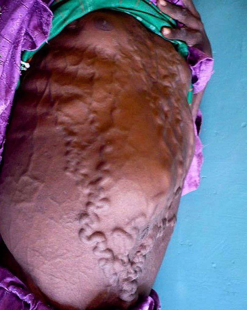 Examination in this patient revealed grossly dilated, snake like tortuous veins on the anterior abdominal wall around umbilicus with direction of blood flow away from umbilicus. The condition was diagnosed as Caput medusae, also called the palm tree sign, is the appearance of distended and engorged superficial epigastric veins, which are seen radiating from the umbilicus across the abdomen. It is one of the cardinal features in patients with progressive and severe portal hypertension, a condition defined as elevation of the hepatic venous pressure gradient to >5mmHg (the normal pressure), which occurs as a consequence of cirrhosis. The mechanism includes increased intrahepatic resistance to the passage of blood flow through the liver together with increased splanchnic blood flow due to vasodilatation within the splanchnic vascular bed. The increased pressure is transmitted or shunted to collateral venous channels into the abdominal wall veins, which are dilated and seen on the abdominal skin.