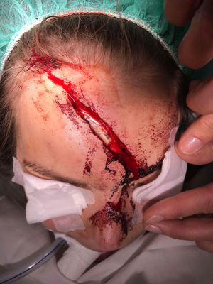 Forehead and nose injured in a car accident