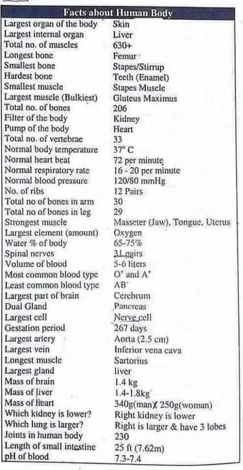 Some important facts about the human body