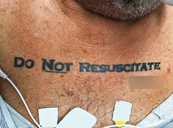 An unconscious man came to a hospital with a 'do not resuscitate' tattoo, and doctors didn't know what to do!! A bit of a dilemma - what would you do? This 70-year-old man, with history of chronic obstructive pulmonary disease, diabetes, and atrial fibrillation, came to a Florida emergency room unconscious, with no identification, and an elevated blood alcohol level. Doctors tried to bring the man to consciousness but couldn't. It was a complicated situation made even more complicated by a tattoo on his anterior chest that read “Do Not Resuscitate,” accompanied by his presumed signature. All efforts at treating reversible causes of his decreased level of consciousness failed to produce a mental status adequate for discussing goals of care. Meanwhile, he was placed on empirical antibiotics, received intravenous fluids and vasopressors, and was treated with bilevel positive airway pressure. The ethics consultants advised to honor the patient’s do not resuscitate tattoo. They suggested that it was most reasonable to infer that the tattoo expressed an authentic preference. This patient’s tattooed request produced more confusion than clarity, but doctors were relieved to find he had also legally filed a written ‘Do not resuscitate’ order. The patient’s clinical status deteriorated throughout the night, and he died without undergoing attempts at resuscitation with cardiopulmonary respiration or advanced airway management. Case by NEJM