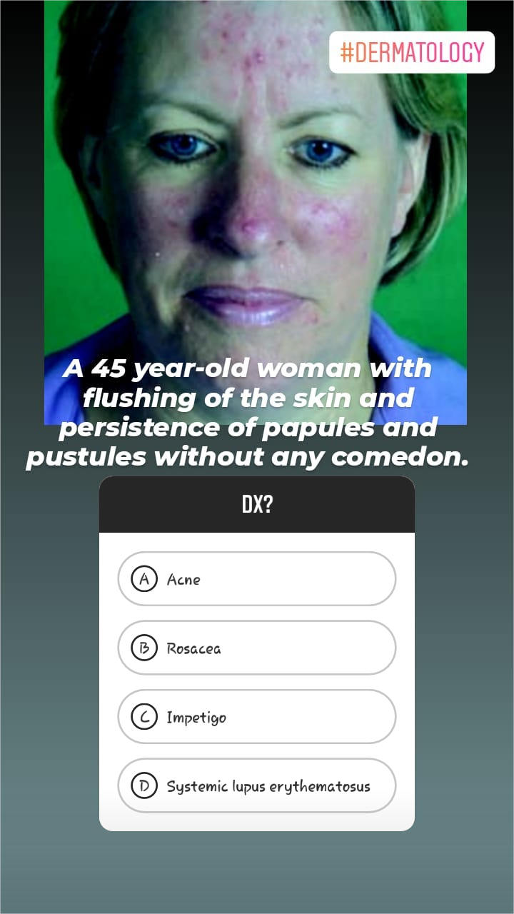Rosacea?cuz Pus filled pimples and reddishness of face