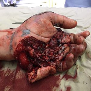 A case of a 90 ton hydraulic press crushing worker's hand. Credit: @reconst.surg.col