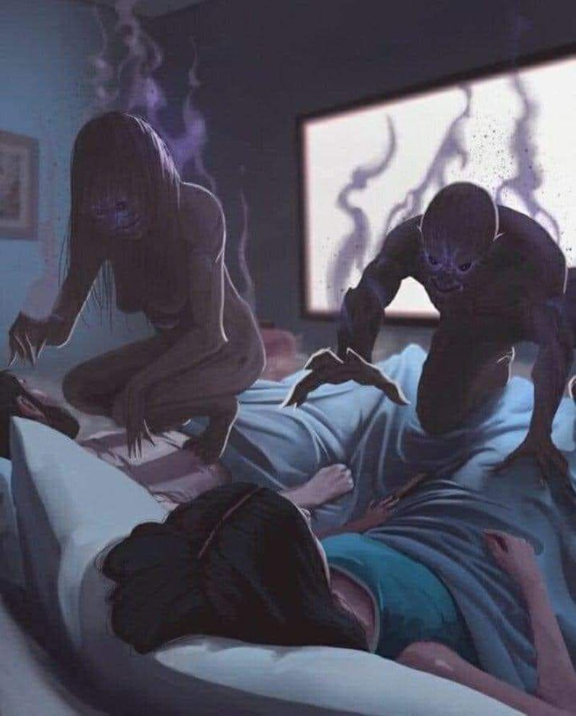 *Do shadowy evil creatures terrify you at night?* *Do you feel locked up/unable to move or breathe anytime during your sleep cycle?* *This might answer all your questions* Sleep paralysis is a feeling of being conscious but unable to move. It occurs when a person passes between stages of wakefulness and sleep. During these transitions, you may be unable to move or speak for a few seconds up to a few minutes. Some people may also feel pressure or a sense of choking. Sleep paralysis may accompany other sleep disorders such as narcolepsy. Sleep paralysis usually occurs at one of two times. If it occurs while you are falling asleep, it's called hypnagogic or predormital sleep paralysis. If it happens as you are waking up, it's called hypnopompic or postdormital sleep paralysis. During sleep, your body alternates between REM (rapid eye movement) and NREM (non-rapid eye movement) sleep. One cycle of REM and NREM sleep lasts about 90 minutes. NREM sleep occurs first and takes up to 75% of your overall sleep time. During NREM sleep, your body relaxes and restores itself. At the end of NREM, your sleep shifts to REM. Your eyes move quickly and dreams occur, but the rest of your body remains very relaxed. Your muscles are "turned off" during REM sleep. If you become aware before the REM cycle has finished, you may notice that you cannot move or speak. Reference: https://www.webmd.com/sleep-disorders/sleep-paralysis?ecd=soc_fb_201015_cons_ref_sleepparalysis&linkId=100000016618784