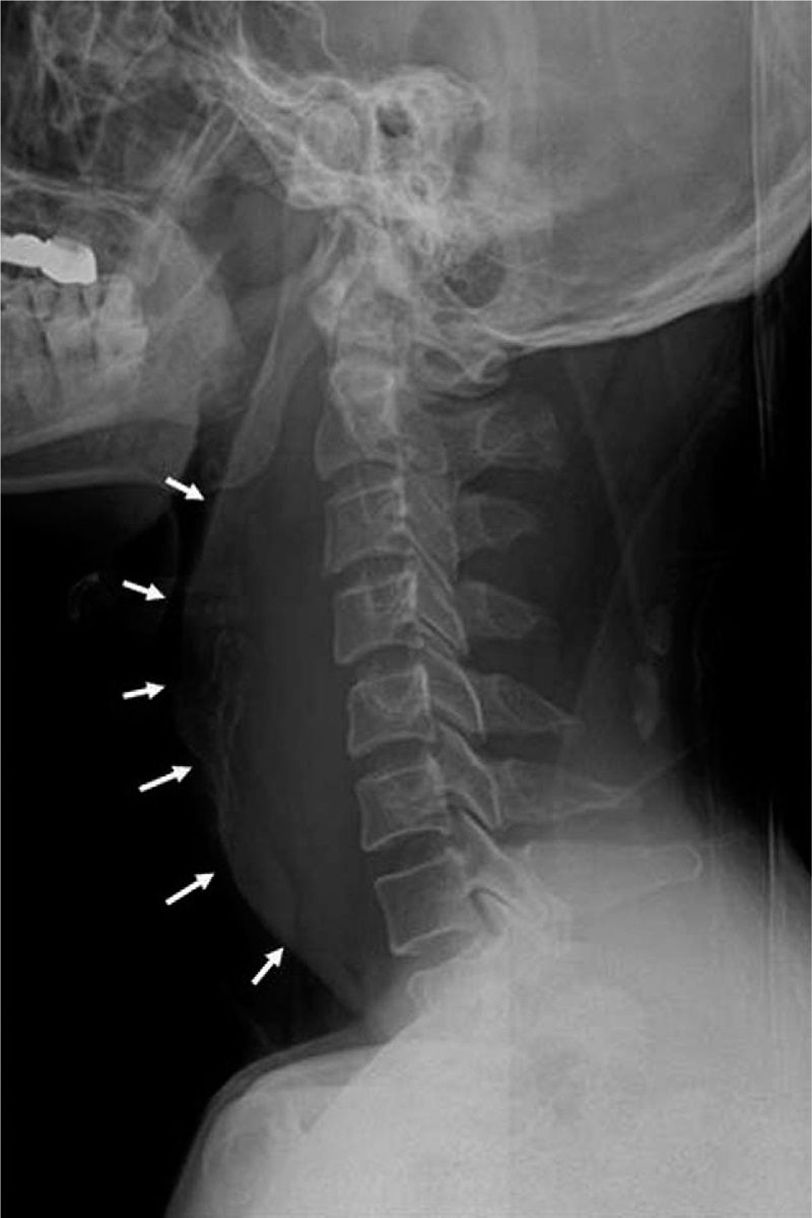 The biggest challenge faced by ER doctors and trauma surgeons is to identify all the potential injuries, both visible and concealed, and ensuring timely appropriate management in order to reduce morbidity and mortality. According to available literature, 1.3% to 39% of injuries may go unnoticed due to inadequate investigations in trauma patients. One such insidious injury is development of retropharyngeal hematoma as a result of major cervical trauma; however, a report described an anomalous case of retropharyngeal hematoma associated with minor blunt trauma. A 49-year-old gentleman was presented with history of road traffic accident which resulted in hyperextension of neck with no other visible injuries. The patient visited ER due to mild respiratory distress. Preliminary investigations were conducted; however, patient was discharged due to insignificant findings with clear instructions to visit ER if symptoms worsen. Patient presented 2 hours after discharge with dyspnea. Physical examination was unremarkable and vital signs were normal. Patient was intubated secondary to worsening dyspnea. Radiological investigations divulged an intense retropharyngeal hematoma. Neck exploration was done for hemorrhage control and removal of hematoma. Patient was discharged with no complications. Retropharyngeal hematoma is extremely hazardous if not identified earlier. Literature suggests frequent vigilant monitoring of minor trauma patients in order to timely identify potential life-threatening condition, several hours after trauma. Reference: Retropharyngeal hematoma secondary to cervical hyperextension in a minor collision trauma presenting with dyspnoea https://journals.lww.com/md-journal/subjects/Critical%20Care%20and%20Emergency%20Medicine/Fulltext/2020/07310/Retropharyngeal_hematoma_secondary_to_cervical.129.aspx (Image taken from: https://journals.lww.com/md-journal/subjects/Critical%20Care%20and%20Emergency%20Medicine/Fulltext/2020/07310/Retropharyngeal_hematoma_secondary_to_cervical.129.aspx)