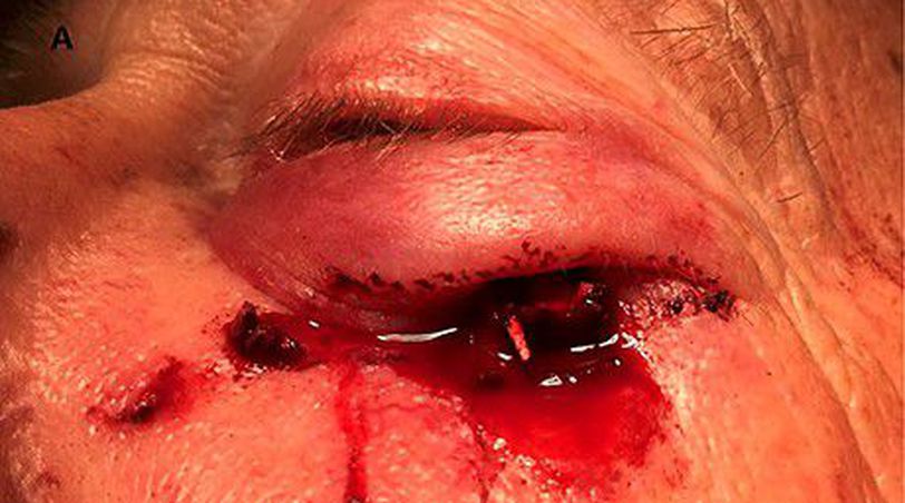 Trans-orbital trauma and intra-sphenoidal trauma are exceptionally challenging to manage due to their close proximity with various important anatomical structures. Particularly important are optic nerve, the central nervous system, the globe, and the ophthalmic internal carotid artery. A journal reported a case of trans-orbital plus sphenoid sinus trauma secondary to fall on a branch of tree that resulted in penetrating trauma. A 75 years old, unidentified gentleman was walking on a sidewalk when he tripped and fell on the branch of tree. This branch was lodged in the orbit and the sphenoid sinus on the left side and was visible above the left cheek (as shown in the image). The examination of eye was hindered due to conditions like edema, superior dislocation of globe and mechanical ptosis. Vision was severely disturbed in the left eye. Radiologic imaging revealed a 7 cm x 0.6 cm wooden foreign object penetrating the sphenoid sinus. The distance between internal carotid artery and the foreign body was approximately 6 mm. the globe and the optic nerve were not damaged. Multidisciplinary surgical team was appointed to manage the trauma after preliminary treatment. The foreign body was removed via endoscopy guided by CT. Several splinters were also identified and extracted. The skin was then sutured. Fundoscopy and slit lamp examination was unremarkable. The key to successful management of such critical trauma is immediate admission to level 1 trauma center followed by treatment by team of highly skilled head and neck surgeons, ENT surgeons, ophthalmologists, and audiologists. Appropriate investigations and proficient trauma surgeons ensure fast recovery along with low risk of development of subsequent complications. Source: Penetrating Orbital Sphenoid Sinus Trauma with a Wooden Stick: A Challenging Case Report https://www.karger.com/Article/FullText/510019 (Image taken from: https://www.karger.com/Article/FullText/510019)