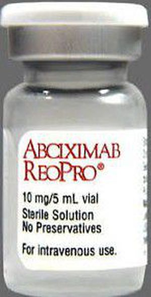 Abciximab, a glycoprotein IIb/IIIa receptor antagonist manufactured by Janssen Biologics BV and distributed by Eli Lilly under the trade name ReoPro, is a platelet aggregation inhibitor