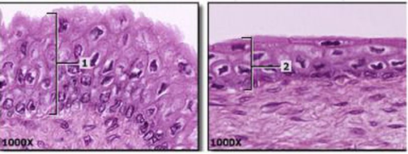 Identify the given histological slides! Comment on what changed from figure 1 to 2 and why. (Image via: https://www.studyblue.com/notes/note/n/anatomy-and-physiology-study-guide-2015-16-bruins/deck/16405489 )
