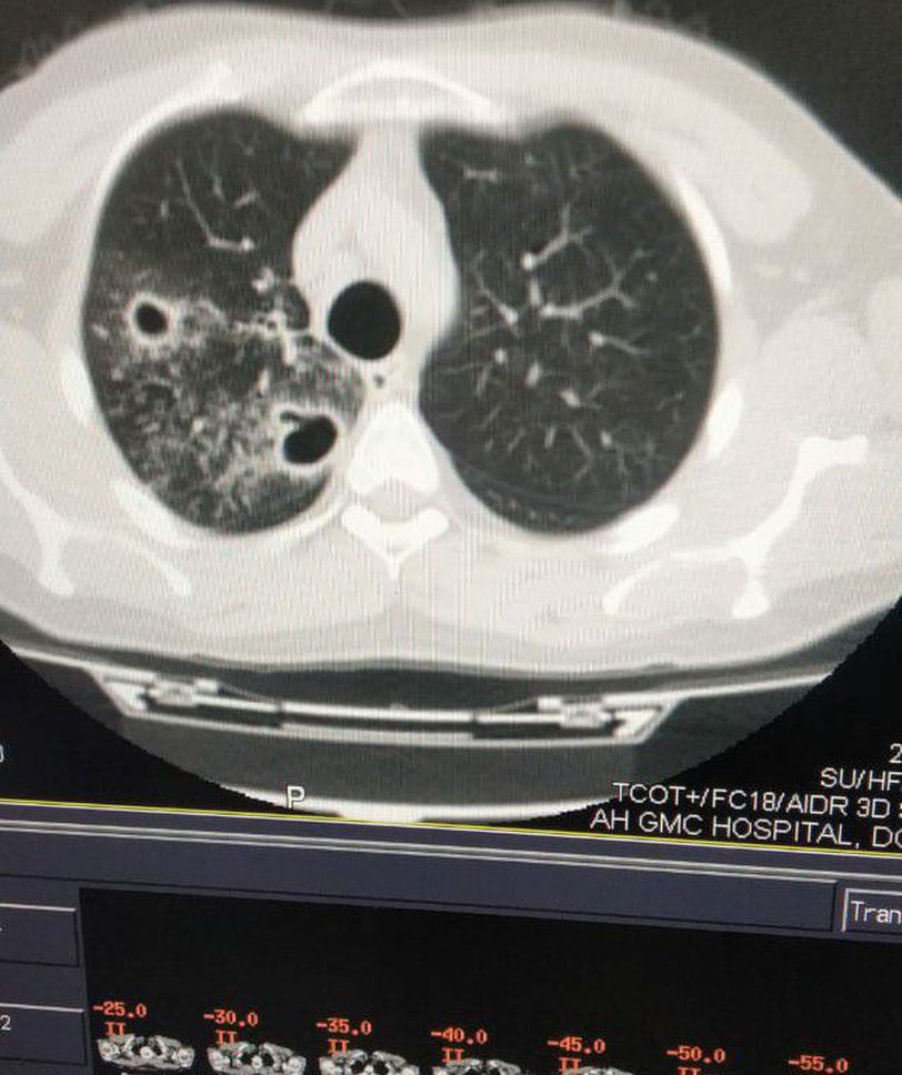 I am confused with black 2 cavities in right lung