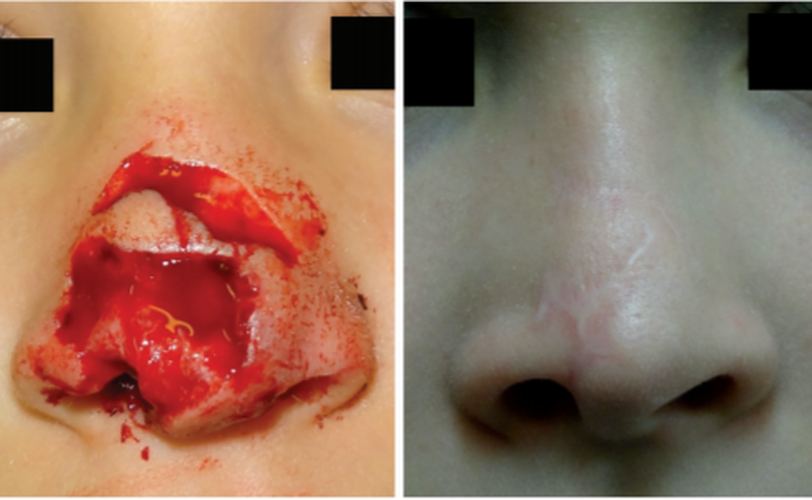 Children are exceptionally vulnerable to dog bites due to their size. The dog bites may result in injuries ranging from simple laceration to complete avulsion, especially in head and neck region. Simple lacerations are typically managed primarily by wound debridement and bandages. Avulsion injuries often require reconstruction. Reconstruction of avulsion injuries secondary to dog bite are frequently associated with number of complications such as failure of the graft and excessive scar tissue formation. Use of porcine urinary bladder matrix has proved to be an effective reconstructive option in case of head and neck dog bite avulsion injuries. The application of porcine urinary bladder matrix does not require sophisticated microvascular skills and it shows sufficient aesthetic results with minimum to no scar tissue formation. Adjuvant pulse dye laser (PDL) may be required to combat intemperate hyperemia of scars, if it appears, in limited number of cases due to its infrequent occurrence. Source Outcomes of Dog Bite Avulsion Injury Reconstruction With Urinary Bladder Matrix https://journals.sagepub.com/doi/abs/10.1177/0194599820932534 Image via https://journals.sagepub.com/doi/abs/10.1177/0194599820932534