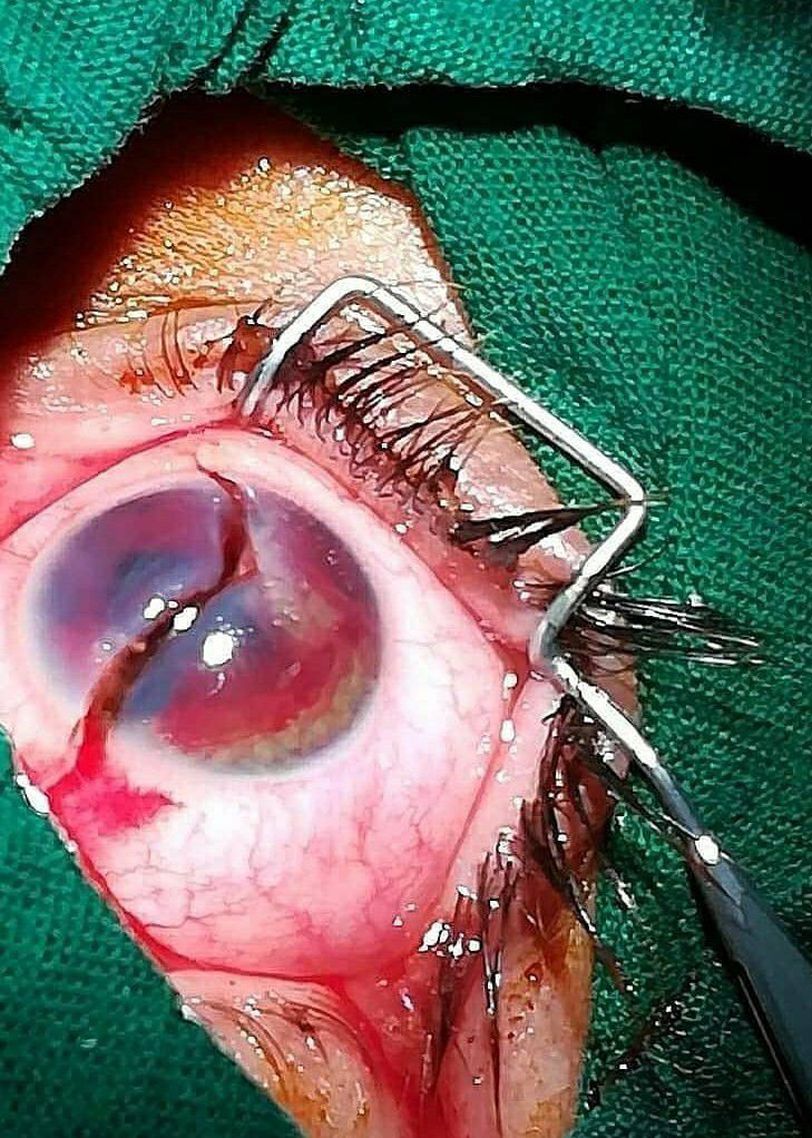 A 30-year-old man is hospitalized with a complaint of eye damage as a result of a foreign object being thrown into his eye. Within four hours of surgery, the foreign body is removed and the suture is done delicately, but, unfortunately, the person loses his sight despite the great efforts of the medical staff.