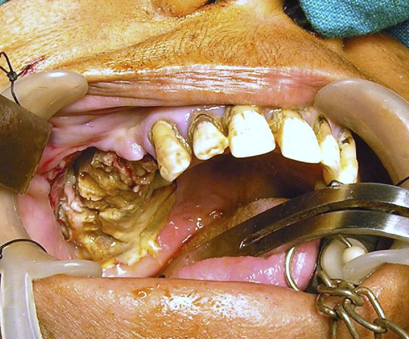 A 52 year old lady presented to emergency department with severe pain in right maxillary region after 1 week of the extraction of premolars and molars. The pain aggravated on bending forward and was not associated with any swelling, ulceration or foul smell. However, she complained of partial right nasal obstruction. On examination, there was a large necrotic area in right maxilla which began from canine anteriorly and went beyond maxillary tuberosity posteriorly. The patient was having a fever of 100.7°F with a raised blood pressure upto 160/90. Rest of the examination was unremarkable. A number of differentials including tuberculous osteomyelitis, tertiary syphilis, necrotizing sialometaplasia , squamous cell carcinoma, mucormycosis, aspergillosis and adenoid cystic carcinoma were made. After conducting a number of labs and VDRL tests, radiological investigations were carried out. The CT scan showed a large area of alveolar destruction involving some portion of right nasal cavity as well as extension to right ethmoidal and sphenoidal sinuses. No cranial or orbital involvement was seen. Histopathological examination revealed septate aspergillus hyphae along with large necrotic and inflammatory tissues. A diagnosis of aspergillosis was made and patient was given intravenous Amphotericin B 0.8/mg/kg/day. Under General Anesthesia, excision of complete right maxillary sinus as well as lateral wall of right nasal cavity was conducted and the patient was put on antifungal therapy for 6 weeks. References: Patil, P. M., & Bhadani, P. (2011). Extensive Maxillary Necrosis Following Tooth Extraction. Journal of Oral and Maxillofacial Surgery, 69(9), 2387-2391. doi:10.1016/j.joms.2010.11.018