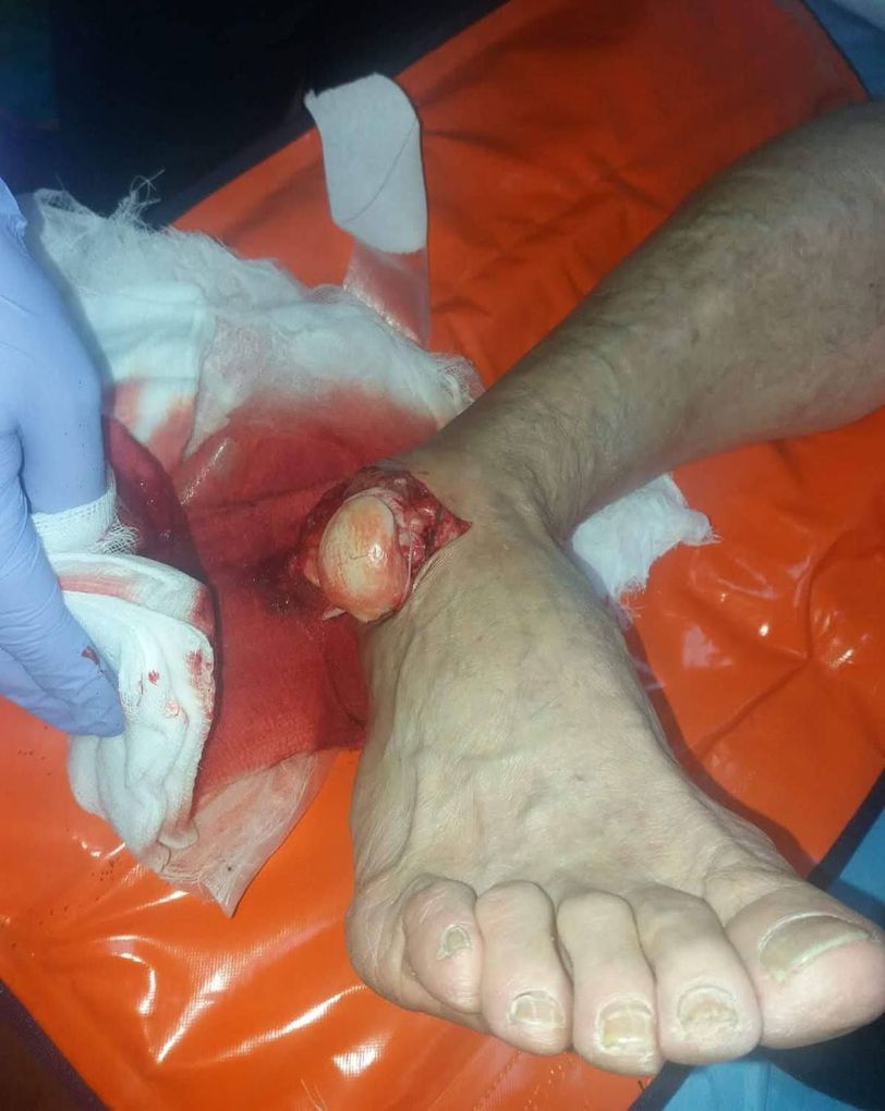 Picture showing open ankle dislocation! Can you name the exposed bone part? Open ankle dislocations are usually a result of a severe trauma. Forces are placed on the ankle that cause the bones to fracture or the ligaments to tear, resulting in the dislocation injury. The ankle is an inherently stable joint and the direction of the dislocation depends upon the position of the foot and where the force arises. Most commonly, a dislocated ankle is associated with fractures of the distal ends of the tibia and fibula (called the malleolus) in association with damage to the ligaments that help support the ankle joint. Previous ankle sprains, medial malleolar hypoplasia, weakness of the peroneal muscles and ligamentous laxity are predisposing factors for dislocation.