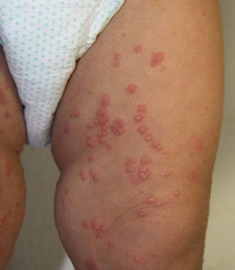 A child with pruritus blister 2 weeks after MMR vaccine #dxcase Gianotti Crosti syndrome (GCS) is a rare childhood skin condition characterized by a papular rash with blisters on the skin of the legs, buttocks, and arms. It typically affects children between 9 months and 9 years of age. Skin lesions typically last at least 10 days and often last for several weeks.