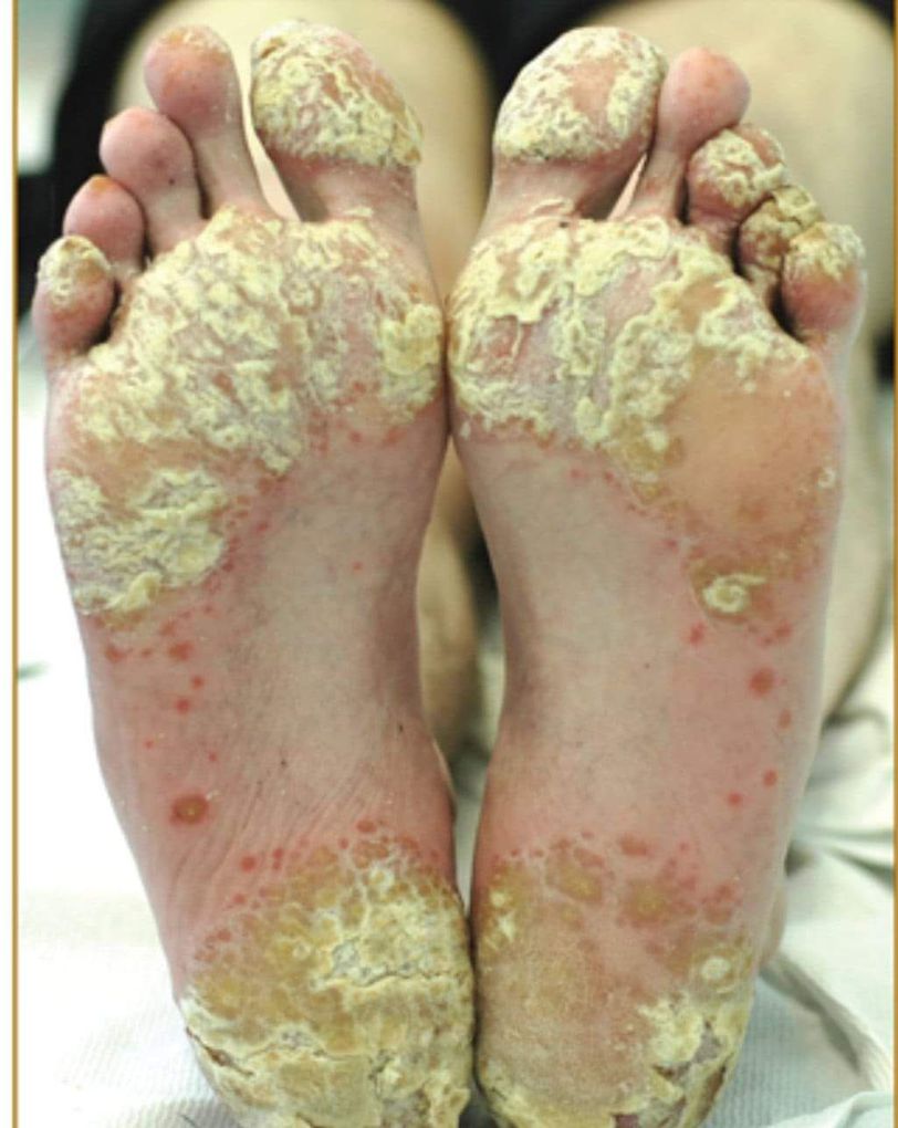 case A man with hyperkeratosis lesion in foots and adenocarcinoma of esophagus Dx: Tylosis syndrome.