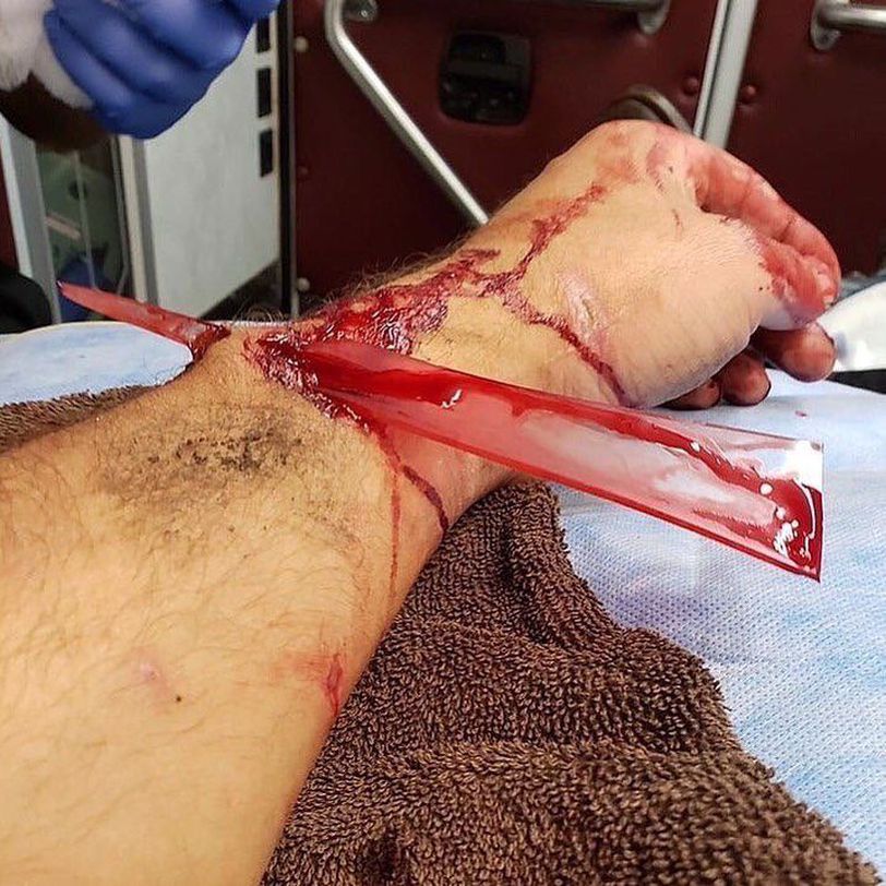 In this case, the patient tried to catch a falling garage door window and his arm ended up getting pierced by the shattered glass.