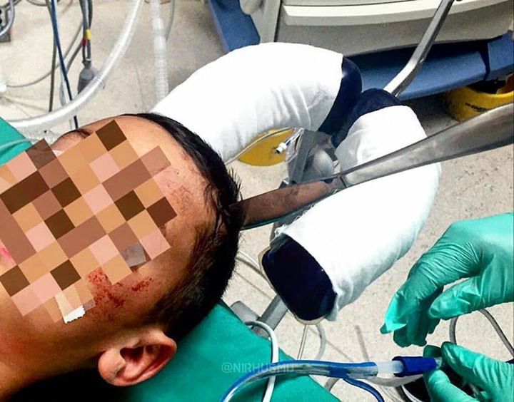 🧠The story goes: During dinner heated words were exchanged and the argument was settled in the most amicable manner when the father proceeded to stab his 9 year old son in the head with a butter knife. Luckily for all, the patient did very well and made full recovery! Credit: @nirhusmd