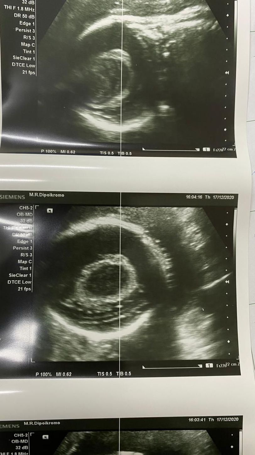 Head circumference echography of 32 week fetus. Seen in the echo presumably midline shifting. And we think it's a plexus choroidalis cyst. However we are not sure. Kindly leave a suggestion and your explanation in the comments.