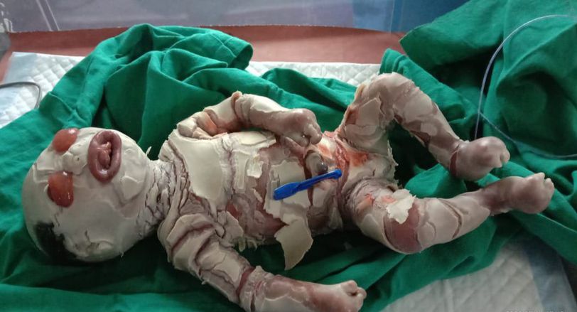 Harlequin ichthyosis, sometimes called Harlequin baby syndrome or congenital ichthyosis, is a rare condition affecting the skin. It’s a type of ichthyosis, which refers to a group of disorders that cause persistently dry, scaly skin all over the body. The skin of a newborn with Harlequin ichthyosis is covered with thick, diamond-shaped plates that resemble fish scales. On the face, these plates can make it hard to breathe and eat. That’s why newborns with Harlequin ichthyosis need immediate intensive care. Harlequin ichthyosis is a serious condition, but medical advances have greatly improved the outlook for babies born with it. Read on to learn more about Harlequin ichthyosis, including treatment options and where to find support if you’re the parent of a child with this condition. What are the symptoms of Harlequin ichthyosis? The symptoms of Harlequin ichthyosis change with age and tend to be more severe in infants. In newborns Babies with Harlequin ichthyosis are usually born prematurely. That means they may have a higher risk of other complications as well. The sign people usually first notice is hard, thick scales all over the body, including the face. The skin is pulled tightly, causing the scales to crack and split open. This hardened skin can cause a number of serious issues, including: eyelids turning inside out eyes not closing lips pulled tight, leaving the mouth open and making nursing difficult ears fused to the head small, swollen hands and feet limited mobility in arms and legs nursing difficulties breathing problems due to tight chest skin infections in deep skin cracks dehydration low body temperature high sodium in the blood, known as hypernatremia In older children and adults Children with Harlequin ichthyosis may experience a delay in physical development. But their mental development is usually on track with other children their age. A child born with Harlequin ichthyosis will likely have red, scaly skin throughout their life. They may also have: sparse or thin hair as a result of scales on the scalp unusual facial features due to stretched skin reduced hearing from a buildup of scales in the ears problems with finger movement due to tight skin thick fingernails recurring skin infections overheating due to scales that interfere with sweating What causes Harlequin ichthyosis? Harlequin ichthyosis is a genetic condition that’s passed on through autosomal recessive genes. You can be a carrier without actually having the disease. For example, if you inherit the gene from one parent, you’ll be a carrier, but you won’t have Harlequin ichthyosis. But if you inherit the affected gene from both parents, you’ll develop the disease. When both parents are carriers, there’s a 25 percent chance that their child will have the condition. That figure holds true for each pregnancy with two parent carriers. According to the National Organization of Rare Disorders, Harlequin ichthyosis affects about 1 in every 500,000 people. How is it diagnosed? Harlequin ichthyosis is usually diagnosed at birth based on appearance. It can also be confirmed through genetic testing. How is Harlequin ichthyosis treated? With improved neonatal facilities, infants born today have a better chance of living longer, healthier lives. But early, intensive treatment is vital. Initial treatment A newborn with Harlequin ichthyosis requires neonatal intensive care, which may include spending time in a heated incubator with high humidity. Tube feeding can help prevent malnutrition and dehydration. Special lubrication and protection can help keep eyes healthy. Other initial treatments might include: applying retinoids to help shed hard, scaly skin applying topical antibiotics to prevent infection covering the skin in bandages to prevent infection placing a tube in the airway to help with breathing using lubricating eye drops or protective devices on the eyes