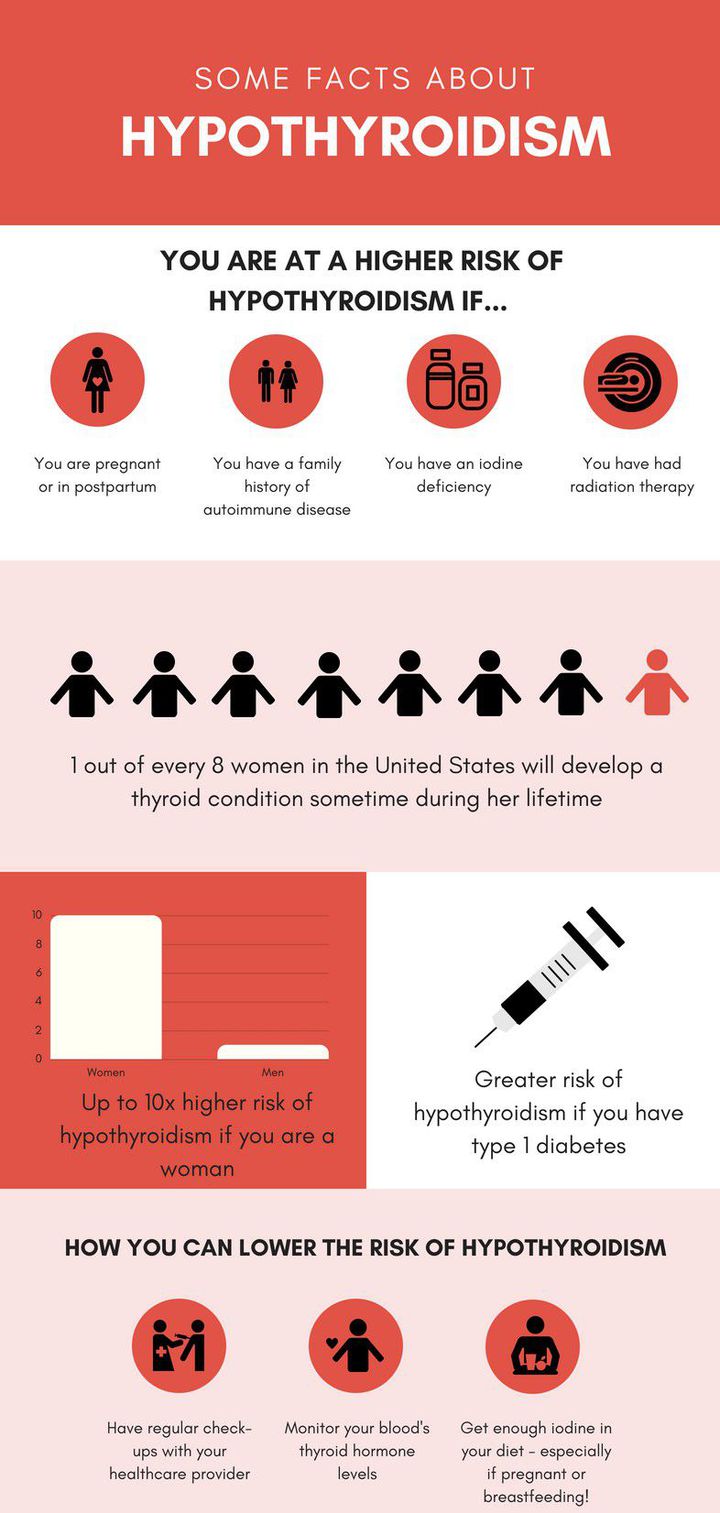 Risk factors Although anyone can develop hypothyroidism, you're at an increased risk if you: Are a woman Are older than 60 Have a family history of thyroid disease Have an autoimmune disease, such as type 1 diabetes or celiac disease Have been treated with radioactive iodine or anti-thyroid medications Received radiation to your neck or upper chest Have had thyroid surgery (partial thyroidectomy) Have been pregnant or delivered a baby within the past six months
