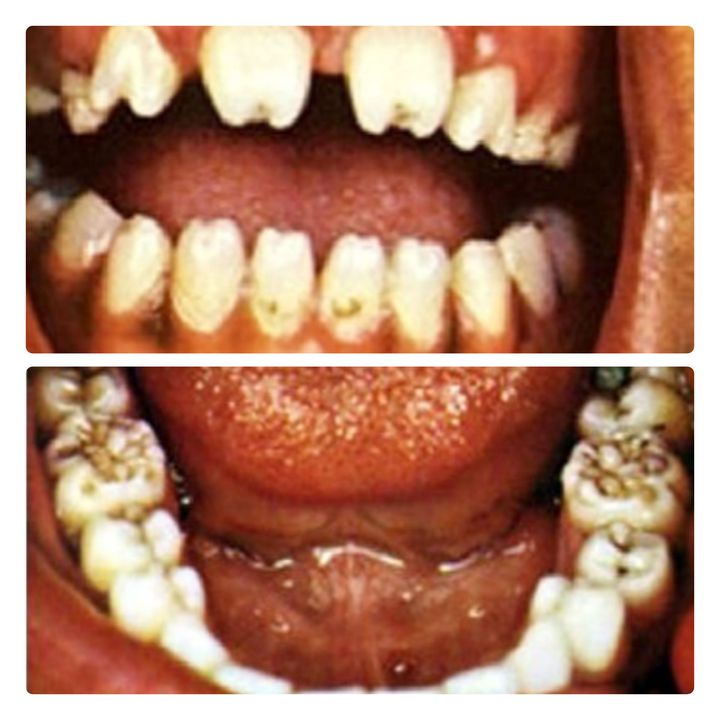 The images above and below show Hutchison teeth and mulberry molars respectively. These tooth deformities are quite characteristic of congenital syphilis. If the mother acquires syphilis in utero, her child can develop multi-system defects ranging from facial and dentition defects to brain damage, deafness and blindness. Children may also develop skin rash and hepatosplenomegaly. Image source: https://www.google.com/amp/s/www.researchgate.net/figure/Syphilis-notched-incisors-Hutchinson-teeth-Courtesy-of-Marquette-University-School-of_fig6_261913711/amp