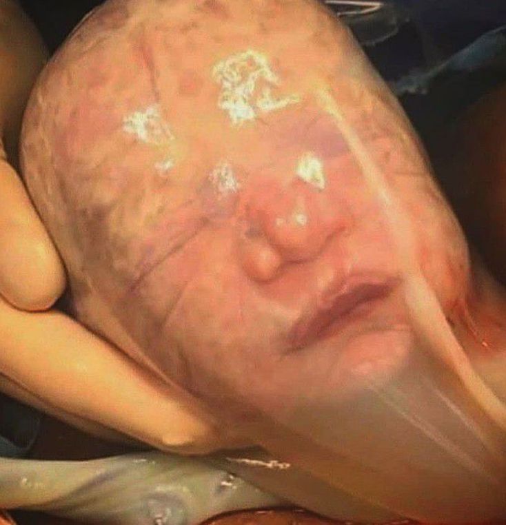'En caul' birth is a rare condition that occurs 1 in 80,000 babies. A baby is born inside a soft jello-like pouch,which is actually the amniotic sac. Fortunately it is completely harmless for the baby. Credits: https://www.instagram.com/p/CJ1IML9HGNI/?igshid=sovn7hoip4ix