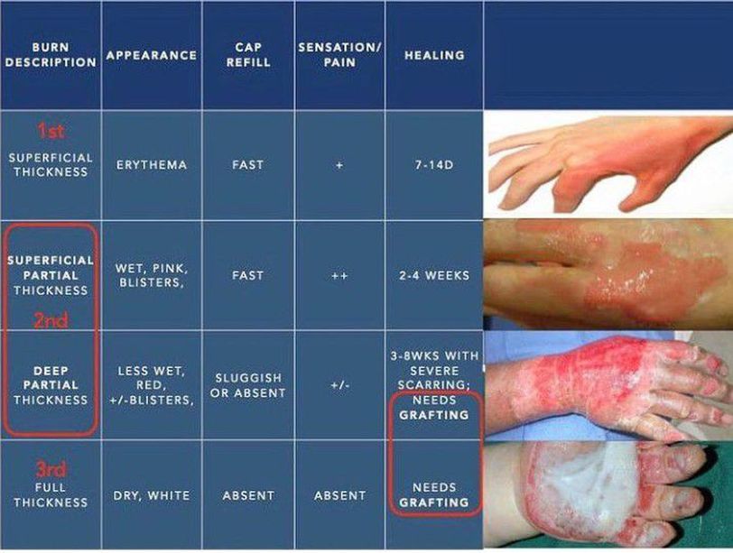 The three levels of burns.