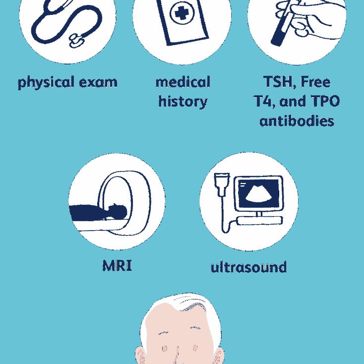 1.history 2.physical examination 3.ivestigation {like blood test} Diagnosis In general, your doctor may test for an underactive thyroid if you are feeling increasingly tired, have dry skin, constipation and weight gain, or have had previous thyroid problems or a goiter. Blood tests Diagnosis of hypothyroidism is based on your symptoms and the results of blood tests that measure the level of TSH and sometimes the level of the thyroid hormone thyroxine. A low level of thyroxine and high level of TSH indicate an underactive thyroid. That's because your pituitary produces more TSH in an effort to stimulate your thyroid gland into producing more thyroid hormone. Doctors can diagnose thyroid disorders much earlier than in the past — often before you experience symptoms. Because the TSH test is the best screening test, your doctor will likely check TSH first and follow with a thyroid hormone test if needed. TSH tests also play an important role in managing hypothyroidism. They help your doctor determine the right dosage of medication, both initially and over time. In addition, TSH tests are used to help diagnose a condition called subclinical hypothyroidism, which usually causes no outward signs or symptoms. In this condition, you have normal blood levels of triiodothyronine and thyroxine, but higher than normal levels of TSH. There are certain factors that can affect blood tests for thyroid problems. One is the blood-thinning medication called heparin. Another is biotin, a vitamin taken as a stand-alone supplement or as part of a multivitamin. Let your doctor know about any medications or supplements you take before having blood tests done.