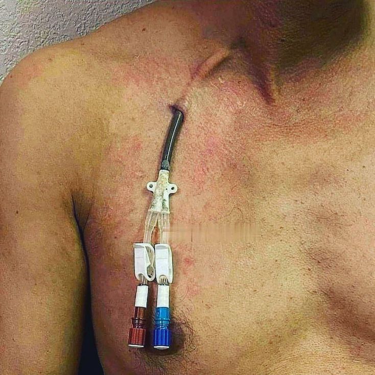 This is a hemodialysis catheter. The double and separate tube can be placed in a vein in the neck, chest or groin, using local anesthesia. It is usually a temporary option for patients who do not have a fistula and need to undergo dialysis treatment. During hemodialysis, blood leaves the body through the red tube, passes through the hemodialysis device and returns through the blue tube. #dialysis #hospital #medicine #health #medicogram